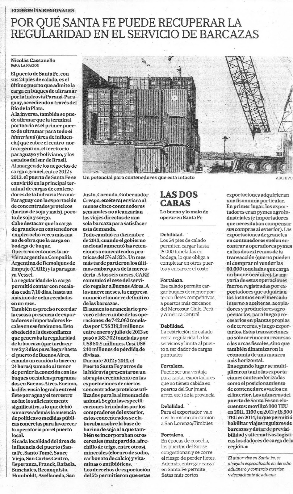 (*) artículo publicado el 1/3/2016, en la Edición Impresa del Suplemento Comercio Exterior y Logística de La Nación. El texto puede ser consultado en este enlace.